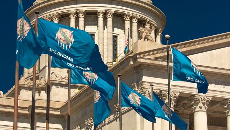 La bandera estatal vuela sobre el Capitolio del Estado de Oklahoma, Oklahoma City OK. (Foto de: Visions of America/Universal Images Group a través de Getty Images)