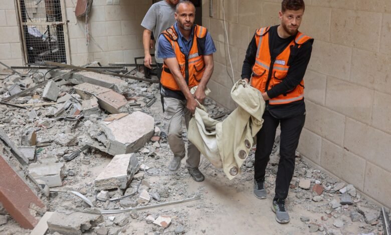 Mahmoud Basal, portavoz de la Agencia de Defensa Civil de Gaza, dijo que la falta de equipos de rescate ha impedido que los trabajadores de emergencia lleguen a los enterrados debajo del edificio colapsado bombardeado por Israel antes del amanecer.