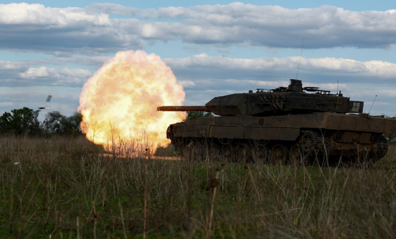 Los militares ucranianos de la 21a Brigada Mecanizada separada disparan un tanque Leopard 2A6 durante un ejercicio militar, en medio del ataque de Rusia contra Ucrania, cerca de una línea de primera línea en la región de Donetsk, Ucrania, 12 de mayo de 2024. (Reuters/ Valentyn Ogirenko/ File Foto)