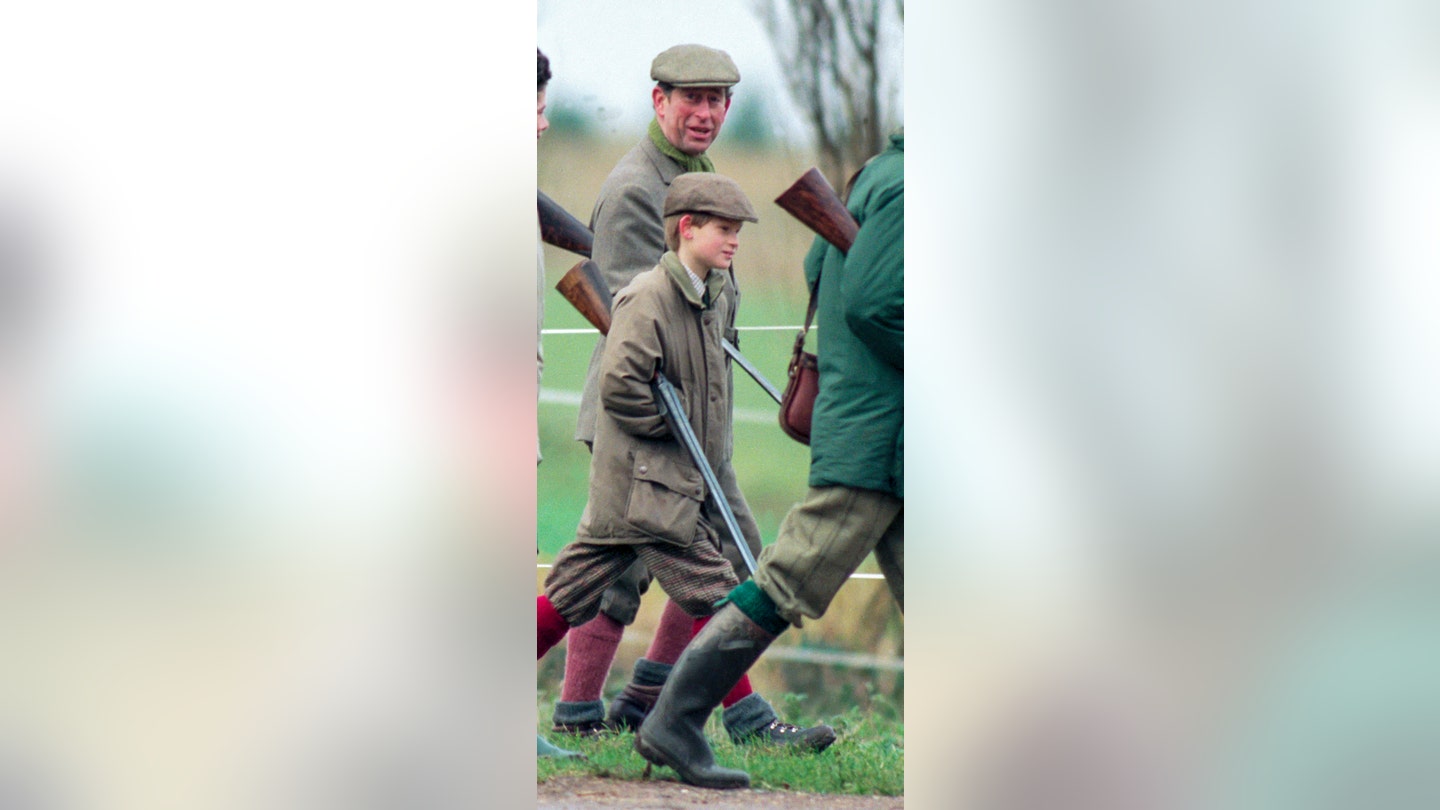 El ex príncipe Carlos y un joven príncipe Harry participan en una sesión en Sandringham, Norfolk, el 30 de noviembre de 1996. (Julian Parker/UK Press a través de Getty Images)
