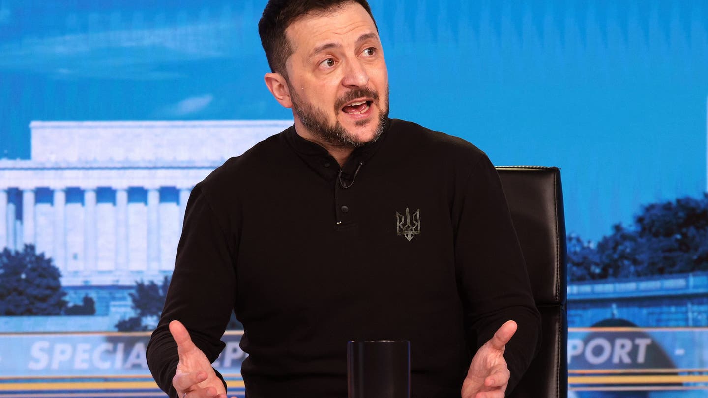 El presidente ucraniano, Volodymyr Zelenskyy, habla durante una entrevista con Bret Baier de Fox News en «Informe especial con Bret Baier» en el Fox News Studios el 28 de febrero de 2025, en Washington, DC (Gana McNamee/Getty Images)