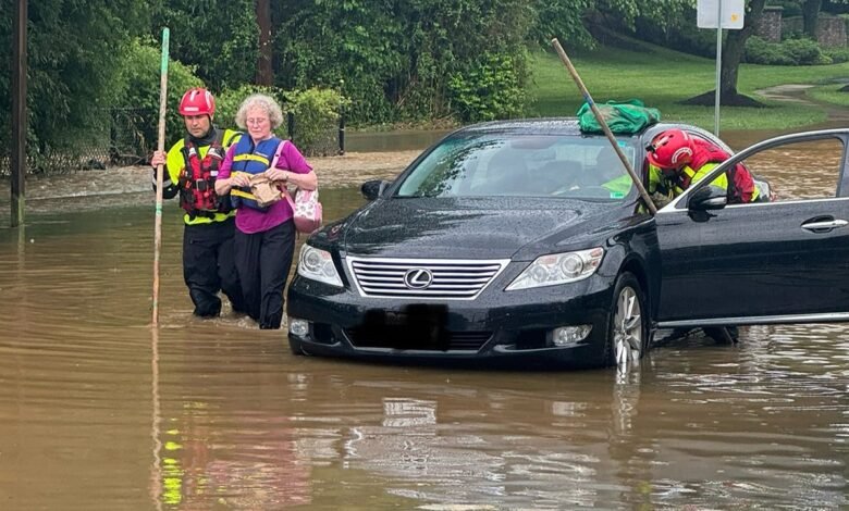 20 rescatados del edificio, docenas de vehículos mientras las tormentas inundan DMV