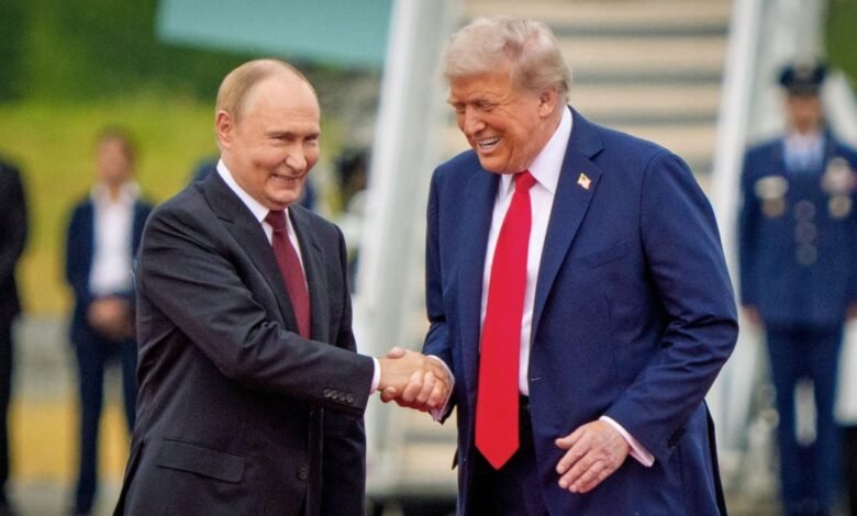 El presidente Donald Trump saluda al presidente ruso Vladimir Putin cuando llega a la base conjunta Elmendorf-Richardson el viernes.Andrew Harnik / Getty Images