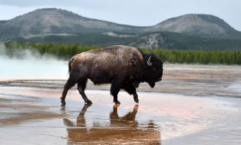 Un bisonte deambulaba por el borde cuando tropezaba con el agua hirviendo y no podía salir y ahogarse, según la cuenta de un turista.