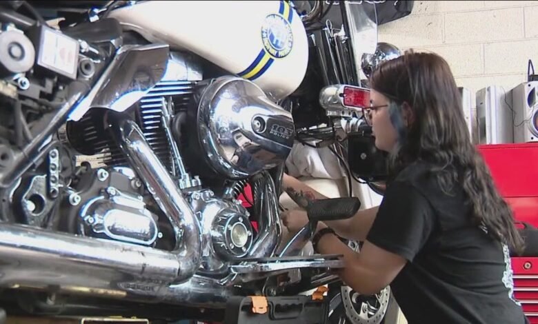 Junto con el trabajo de clase regular, el programa brinda a los estudiantes una instrucción práctica intensiva en 48 carreras profesionales diferentes, incluidas la construcción, las artes culinarias, la tecnología de salud o, en el caso de Fidel Rodríguez, la reparación del cuerpo automático. Se graduó el miércoles. Para el viernes, estaba ocupado arreglando autos de policía, ambulancias y camiones de bomberos.