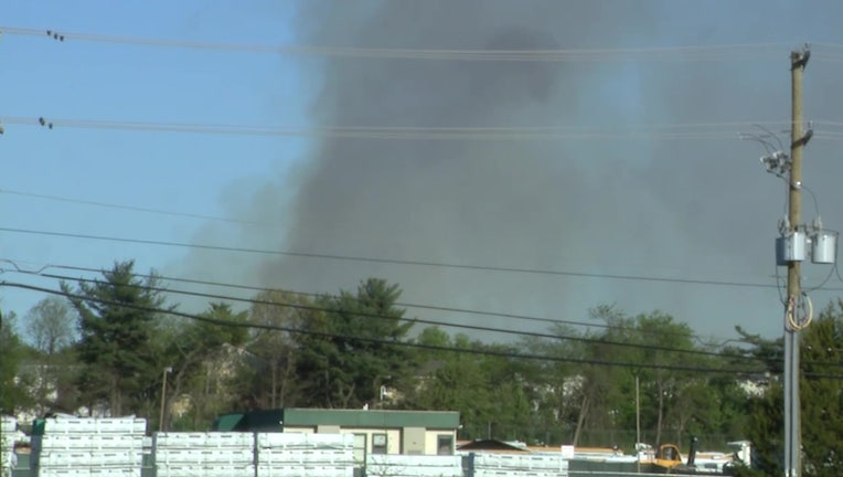 El domingo, las autoridades dicen que un gran incendio de cepillo comenzó justo después de las 4:00 p.m. en un patio de mantillo en el municipio de Waterford.