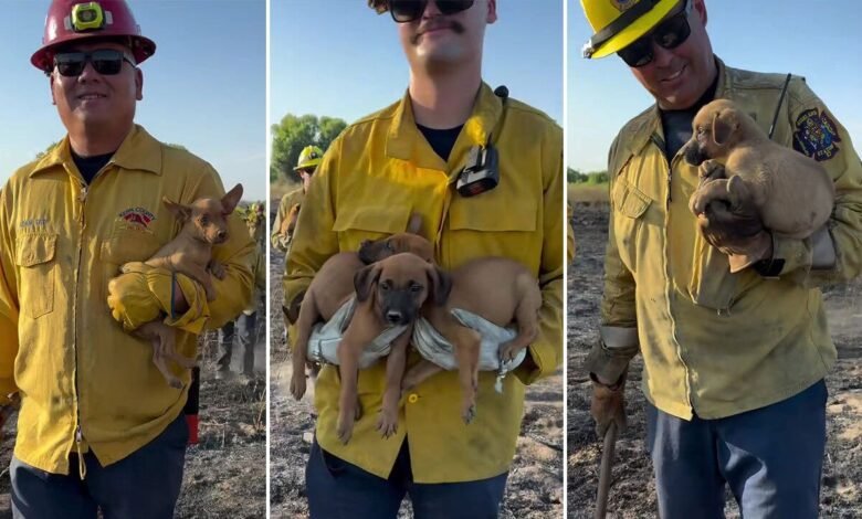 Los bomberos que luchan contra un incendio cerca de Bakersfield, California, hicieron ocho nuevos amigos esta semana cuando encontraron una camada de cachorros.