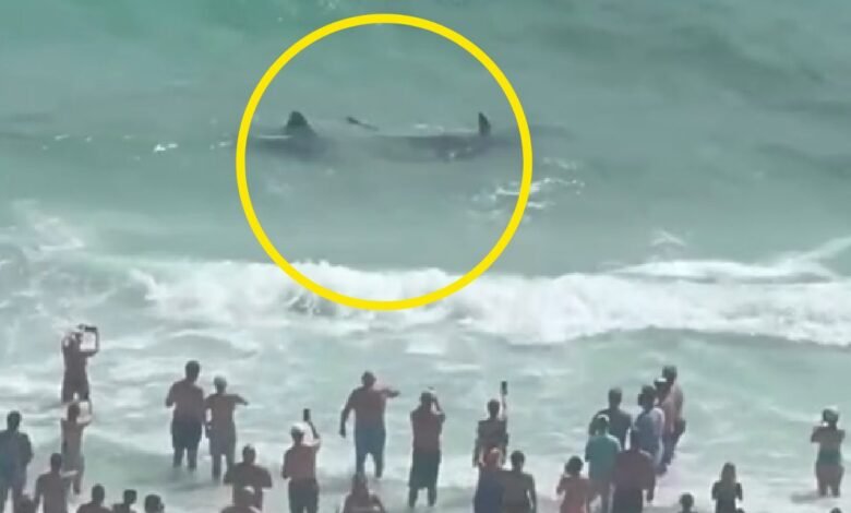 En el video, la aleta y la cola del tiburón se pueden ver justo encima de las olas. Mientras tanto, las aletas de Stingray también se pueden ver apareciendo sobre el agua en el metraje.